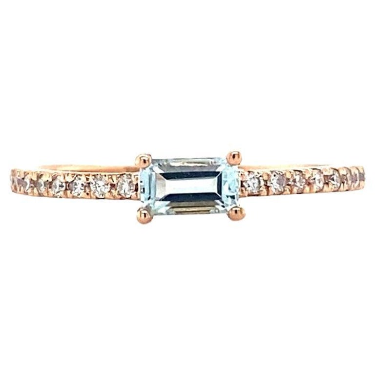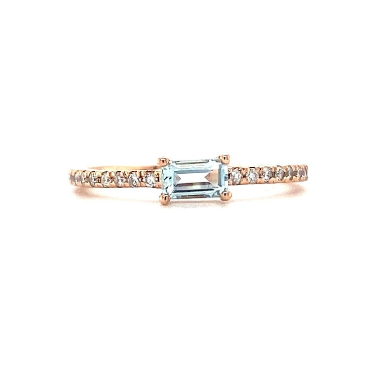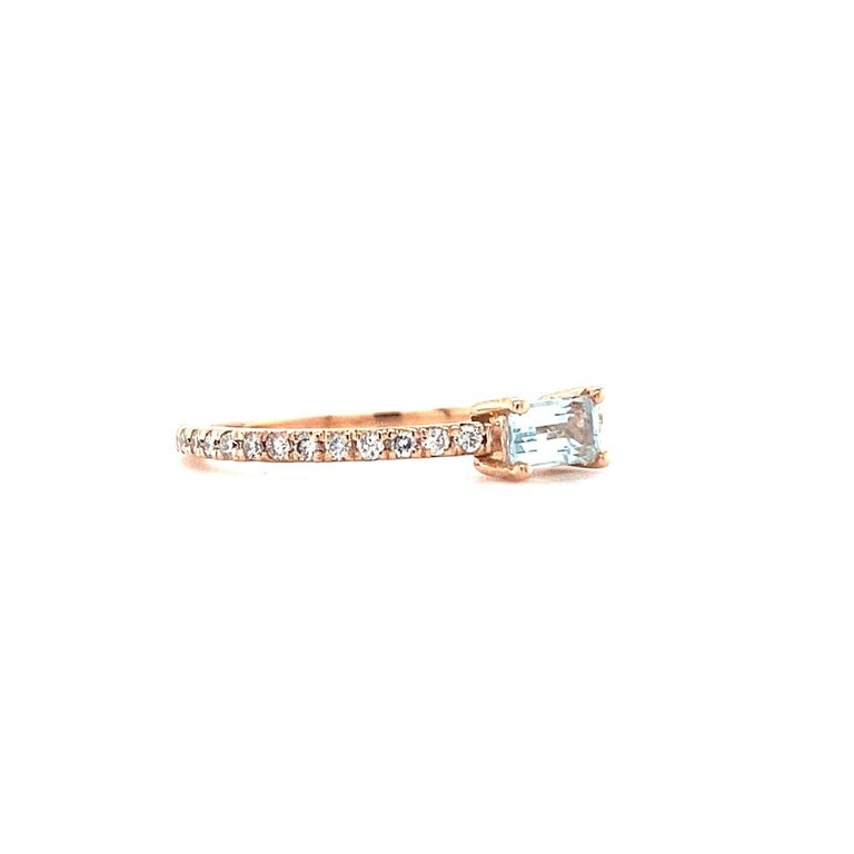 0.48 Ct Aquamarine, Diamond 14 Karat Rose Gold Band